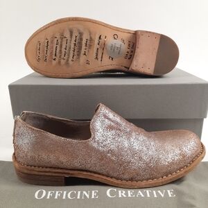OFFICINE CREATIVE Antiqued Silver Leather Loafer Italy Cowgirl Carter Western
