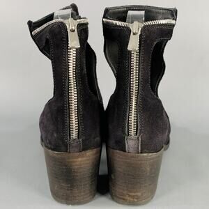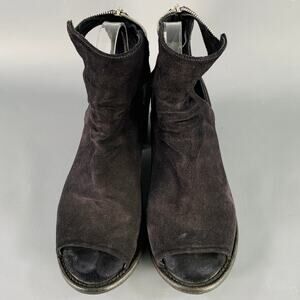 OFFICINE CREATIVE Size 7 Black Suede Cut Out Peep Toe Back Zipper Boots