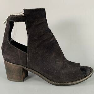 OFFICINE CREATIVE Size 7 Black Suede Cut Out Peep Toe Back Zipper Boots