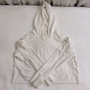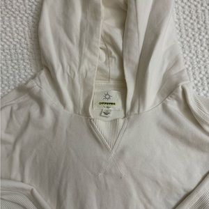 OFFLINE BY AERIE Cropped White Hoodie w/ ribbed detailing