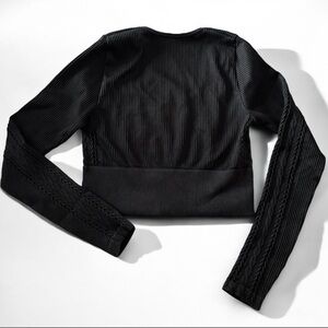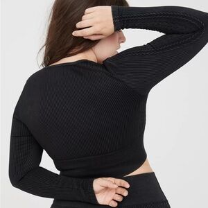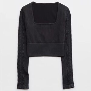 OFFLINE By Aerie Seamless Cable Square Neck Black Top Size Small
