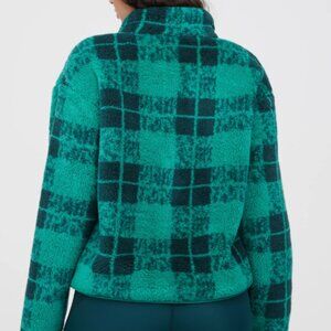 OFFLINE By Aerie Sherpa Quarter Zip Pullover Green Plaid, Large EUC, Cabincore