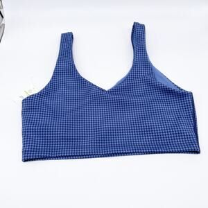 OFFLINE By Aerie Women's Mini Houndstooth V-Neck Longline Sports Bra Blue Medium