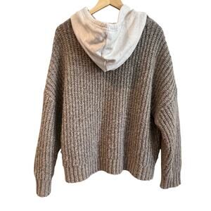 OFFLINE by Aerie Ribbed Knit Sweater Hoodie in Tree Line Brown Size XL