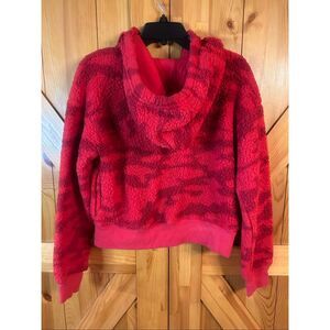 OFFLINE by Aerie Women’s Red Fleece Sherpa Zip Up Jacket. Has hood with drawstring. Some fabric wear on cuff. See pictures. Size Medium (5728) Measurements: Pit to pit 21” Length 21.5”