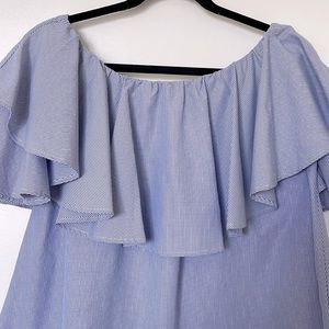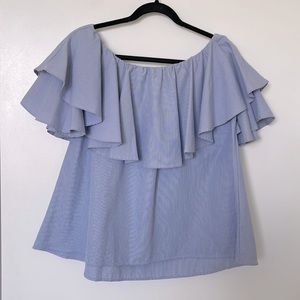 OFF-THE-SHOULDER BLUE RUFFLE TOP BLOUSE Stretch elastic top Size Medium In new excellent condition. Beautiful top!