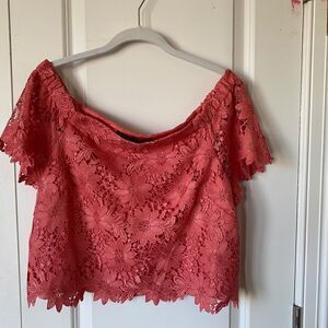 Petite off-the-shoulder lace crop bodice top in gelato pink