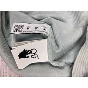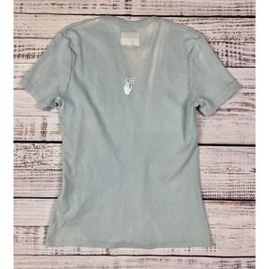 OFF-WHITE C/O VIRGIL ABLOH Blue Laundry Ribbed Bleach Effect T-Shirt Size 48
