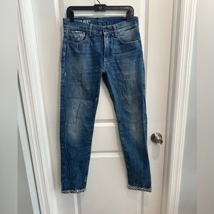 Super cool jeans from OFF-WHITE. Features tons of fun details. Diagonal patches on the leg as well as pattern details on the hem/cuff of each leg. In fantastic condition! Barely worn.
