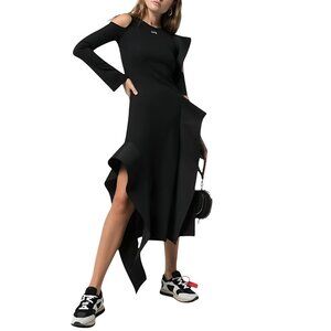 OFF-WHITE MADE IN ITALY ASYMMETRIC LOGO PRINT MIDI DRESS SIZE 42 IT, S/M US NEW