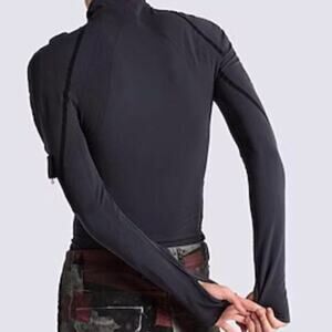 jersey, brand logo, two-tone, turtleneck, long sleeves, zipper closure, multipockets, stretch streetwear, punk, grunge, edgy, casual, comfortable, retro, vintage, athletic, alternative, urban, hip-hop, sporty,