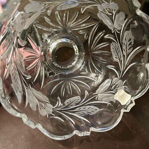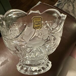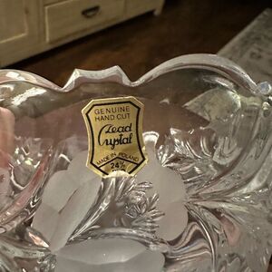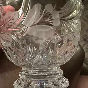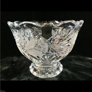 OFNAH 24% PBO Hand Cut Lead Crystal Pedestal Bowl Etched Floral Poland