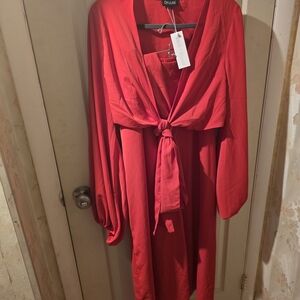 Add a bold touch to your wardrobe with the Red Long Sleeve front Tie Crop Top. Crafted from luxurious fabric in a striking red hue, this crop top features a chic long sleeve design and a seductive front wrap tie detail that effortlessly combines sophistication with a hint of flirtiness. The fitted bodice and elegant sleeves create a flattering silhouette, making it perfect for both daytime outings and evening events. Paired it with high-waisted tailored pants for a look that exudes confidence and style. Elevate your fashion game with this crop top pant set, where vibrant colour meets contemporary design.