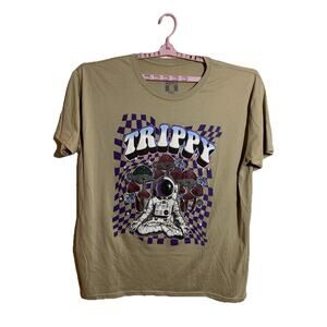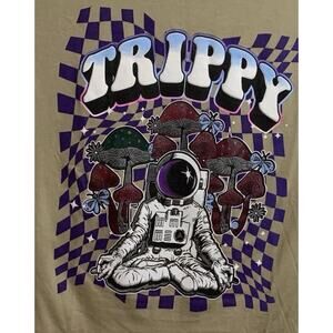 OG Hustle Size 3x Short Sleeve Tee Tan Trippy Astronaut Mushroom Checkered Shirt