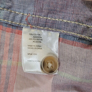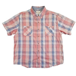 This red, white, and blue plaid button-up is a versatile addition to any wardrobe, featuring a comfortable regular fit in a 2XL size. The short sleeves make it an ideal choice for a range of occasions, from casual outings to more dressed-up events.