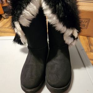 OGC Black Faux Fur Snow Boots Ladies Sz 10