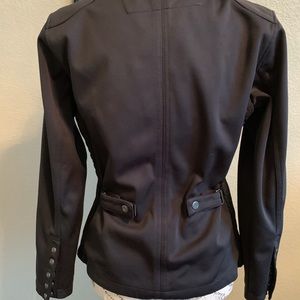 Black Motorcycle jacket with great snap detail on the wrists with adjustable snaps on the back for a fitted look. It’s water & wind resistant. RN90836