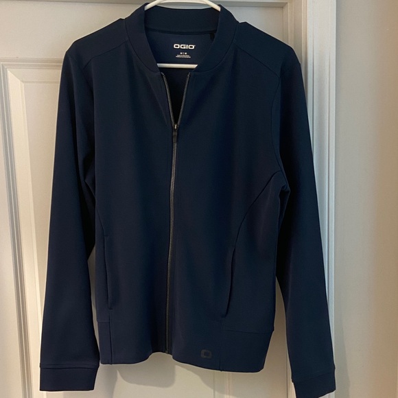 Lightweight full-zip jacket with clean lines. Smooth, stretch fabric for easy movement. Subtle seam detailing at the sides. Discreet OGIO logo at collar and hem. Versatile navy color for everyday wear.
