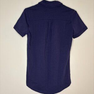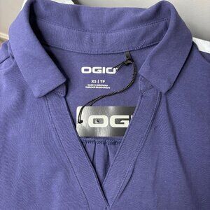 OGIO Sz XS NEW wTAGS VNeck Collared Short Sleeve Stretch Top Navy Round Hem
