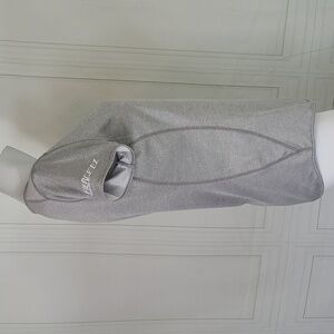 Approx. Flat Lay Measurements: 15" shoulder to shoulder, 19" arm to arm, 19" wide at bottom hem, 25.5" long measured at back center, 6" long sleeves.