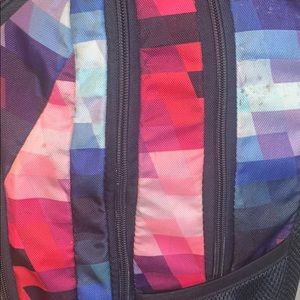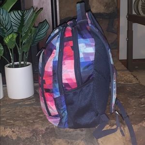 Brightly-colored, geometric-patterned OGIO laptop backpack. Includes 2 main zippered compartments, laptop and tablet sleeves, and tons of pockets and storage.
