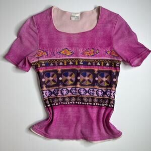 OGIRL Pink Mesh Ethnic Print Double Layer Top Sz XS Y2K Retro Indie Fairycore