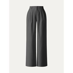 These OGL Davy Gray wide-leg trouser pants are designed for women in size M. Made from a blend of polyester, spandex, rayon, and bamboo, they feature a high-rise waist and pleated front for a sophisticated look. The pants have a solid gray color, are lightweight, and perfect for various occasions such as travel, casual outings, or business settings during the summer, fall, or spring seasons. Easy to care for with machine washable fabric, these woven pants offer a comfortable and stylish option for a versatile wardrobe.