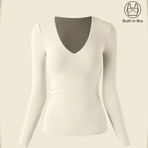 OGL Eco Mousse Mid Thermal V-Neck Ruched Sides Brami Top in Off White Size Medium NEW