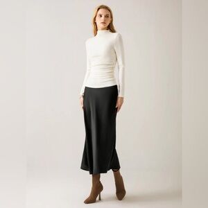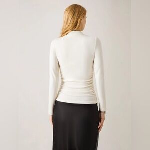OGL Mid Thermal Ruched Sides Tuckable Mockneck Top - off white