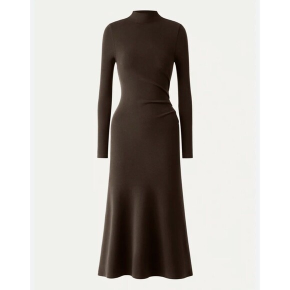 OGL Sleeveless Mockneck Tucks Midi Dress Hazelnut Brown Small NWT
