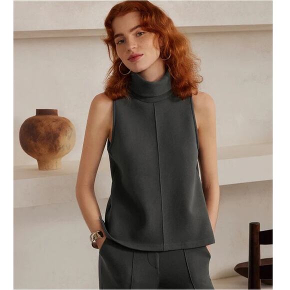 OGL Turtleneck Split Hem Top Sleeveless FuzzLuxe Deep Grey Size Medium