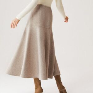 OGL Warm Cozy CashSoft Wool Look Flared Side Zip Maxi Skirt Brown Size Small