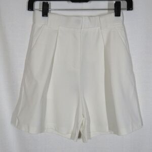 OGL White Bamboo Blend Ponte Knit Pleated High Waist Zip Up Shorts Size XS