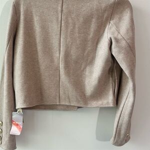 OGL Women's Beige Cropped Button-Up Jacket Size small