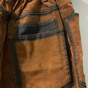 NWOT and no defects. Size large OH JEANS. They are a distressed brown suede velvet like jeans with 5 big pockets and elastic back. They have2 pleats on the knee area on front and back. Super cute western inspired boho. Flat waist 15 1/2” front rise 12” and inseam 26”. Retail $99. Tote 18.