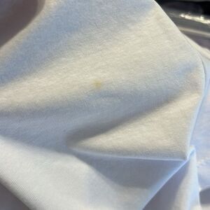 Size small Oh Mamma new with tag (no pricetag) white maternity / postpartum crewneck pull-on t-shirt. One small spot on back as shown in last picture. Hard to see, but since it's new with tags I didn't want to try to clean it.