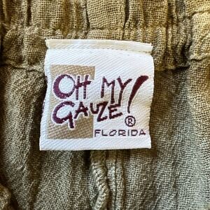 This Oh My Gauze matching pants and top set is perfect for those looking for a comfortable and relaxed outfit. Made from soft cotton gauze fabric, this Small set comes in a khaki color and features an oversized fit. The boho-inspired Lagenlook theme adds a touch of style to this two-piece outfit, which includes both pants and a top.