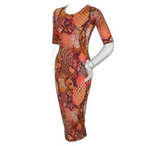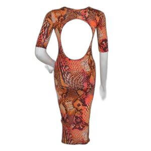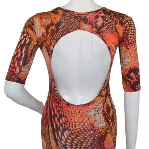 OH MY LOVE Dress, M, Snake print, Bold Color, Open Back, Bodycon, Midi