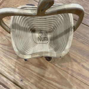 OH! NUTS Apple Shaped Collapsible Wood Fruit / Nut Basket Bowl