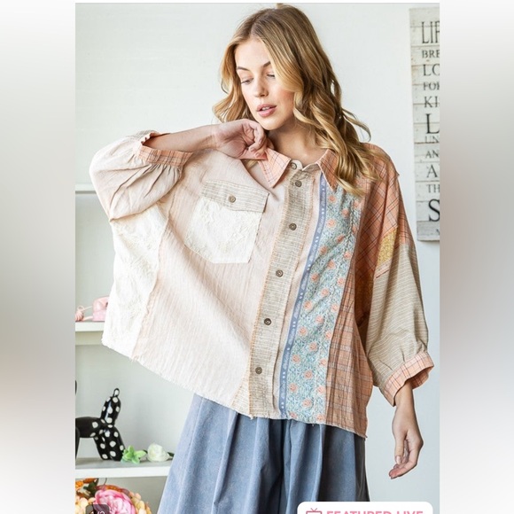 Oli & Hali Patchwork Button Front Long Sleeve T