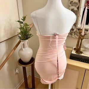 OH POLLY Charm Me Ruched Asymmetric Mini Dress in Blush Size 6 NWOT