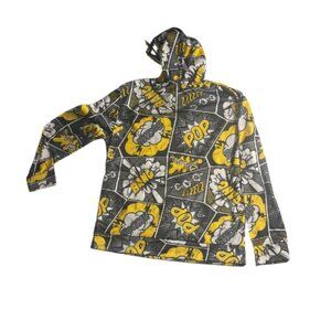 Turn everyday fits into a comic-book panel. This ultra-light hoodie splashes classic pop-art graphics—think “BANG,” “POP,” and “SPLAT!”—across a sharp palette of yellow, black, and white for instant statement energy. Cut from a breathable poly-blend jersey, it drapes easy, layers effortlessly, and keeps you comfy from cool mornings to late-night moves.