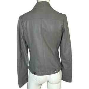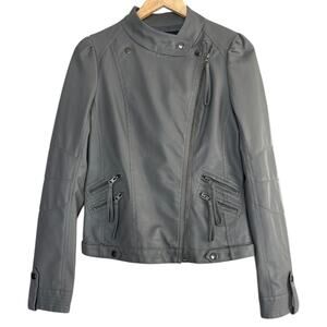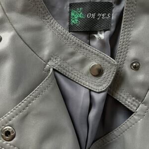 OH YES Gray Faux Leather Moto Jacket Asymmetrical Zip Multiple Pockets