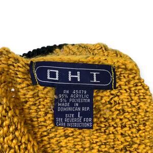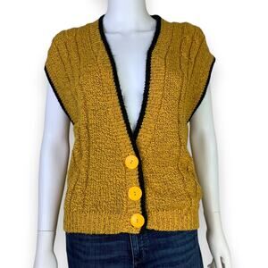 OHI Knitted Cable Knit Vest Size L Button Up Gold Black Trim Grandpa Core 90's