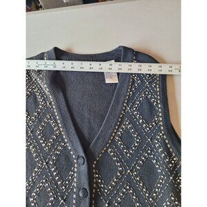 OHI Vintage Knit Vest Womens Size L Beaded Black Button V Neck Ramie Cotton