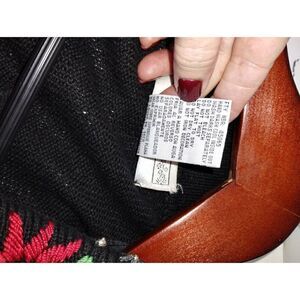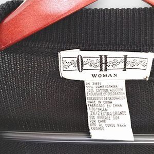 OHI Womens Cardigan Sz 2X Black Red Green Christmas Holiday Sweater Cotton Vtg