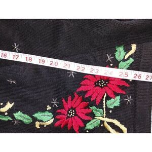 OHI Christmas Sweater Womens 2X Black Cotton Cardigan Poinsettia Sequins