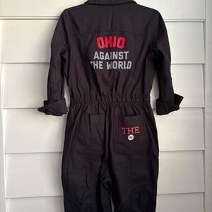 This super fun Ohio State embellished coveralls/ jumpsuit is a customized item. Perfect for fall football game days! Very comfortable and nice quality. Message for questions. Comes in black and 2 Sizes available: 4, 6. Also in khaki color 4,6.