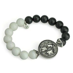 OHM Beads "Oneness" Stretch Bracelet - Onyx and Mother of Pearl
