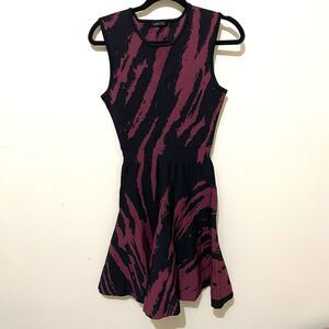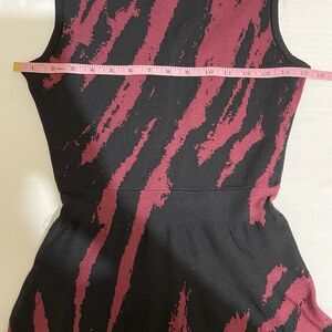 OHNE TITEL Size S Black & Burgundy Marbled Rayon Sleevless Peplum Dress